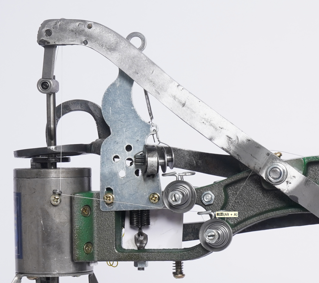 在遇到缝补厚件时,压力必须加大时,这时可以将压脚拉簧螺母旋紧,增加拉簧的拉力,也就增加了压脚的压力,反之即成减少。
